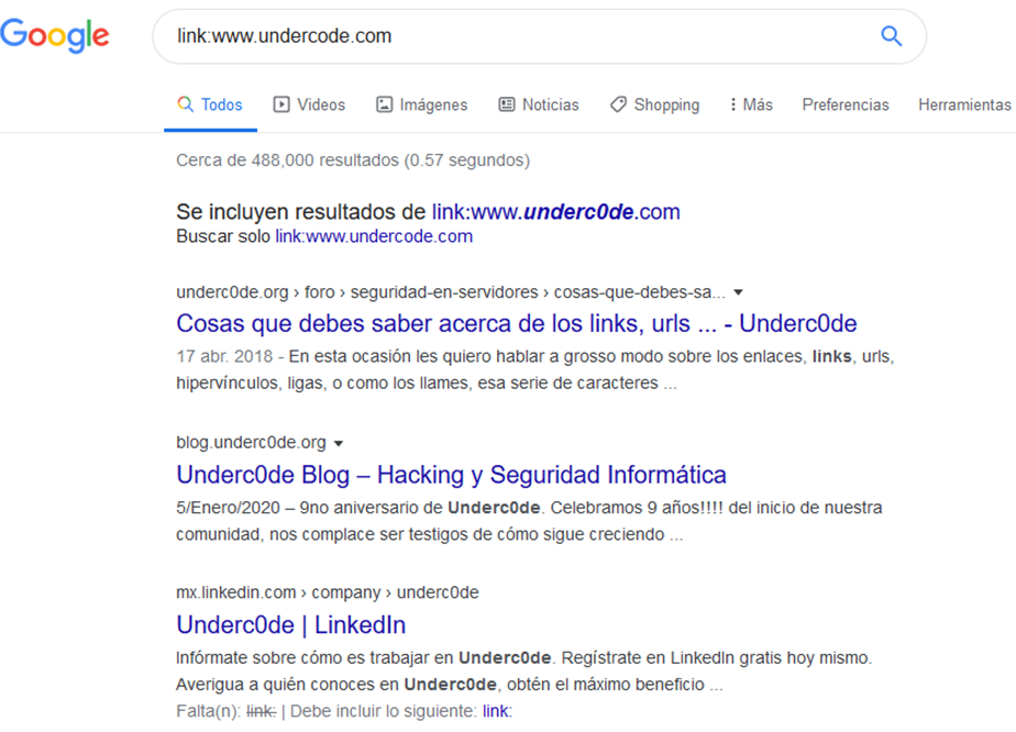 link:underc0de.org → enseña qué sitios apuntan a esa web.